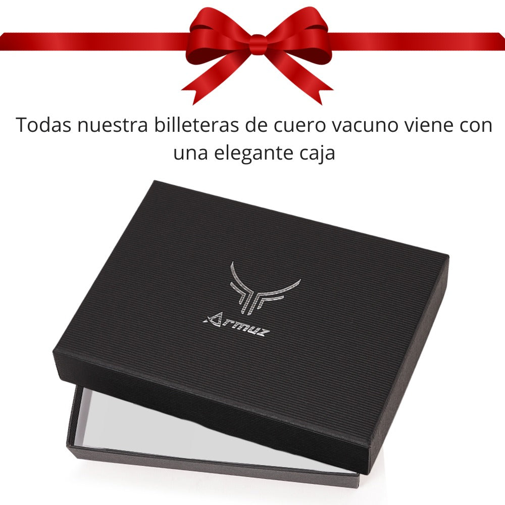 Billetera ejecutiva tipo sobre de diseño práctico de tres cuerpos, con amplia capacidad. Hecha en cuero 100 % genuino vacuno tipo granulado.