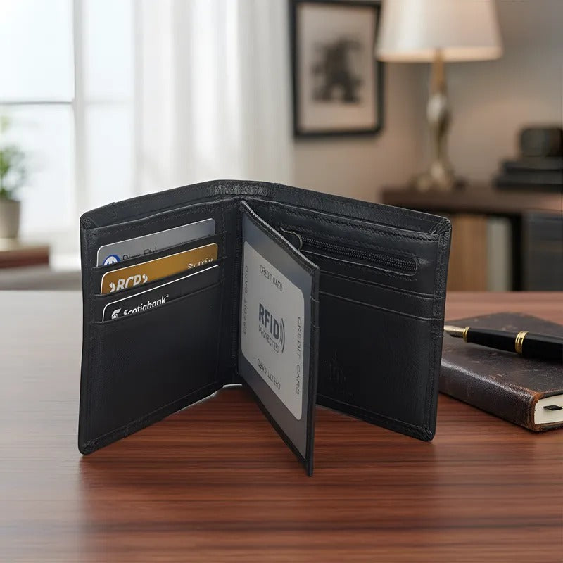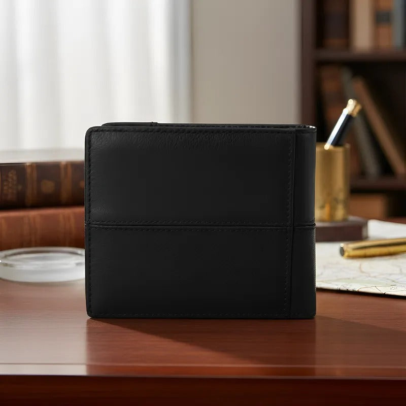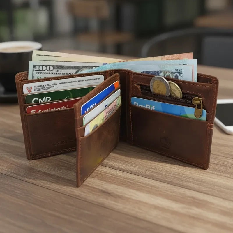 Billetera de cuero clásica y elegante con amplia capacidad para llevar lo necesario de tu día a día con comodidad.